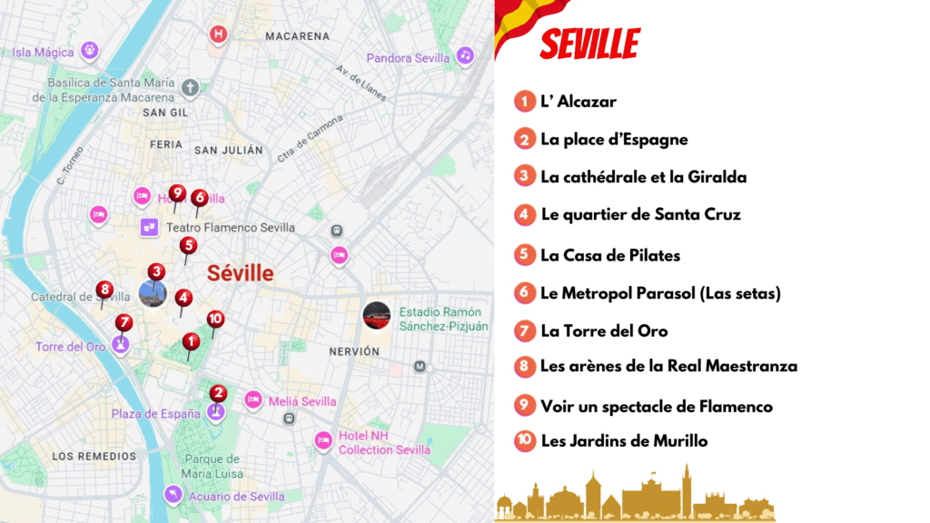👉 Pour réserver un accès prioritaire à l’Alcazar, aux cathédrales et à la Giralda, cliquez ici.