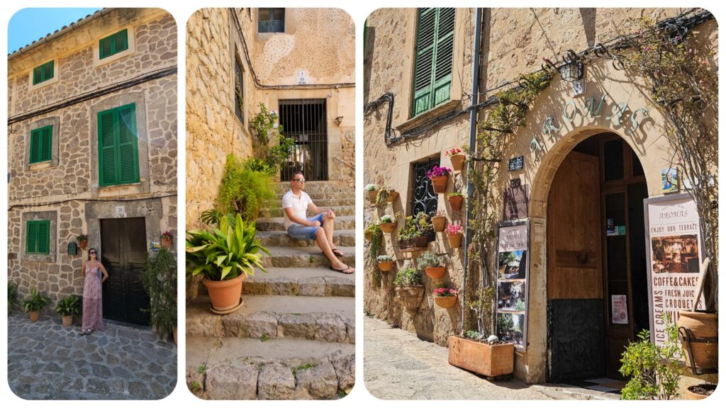 Ce que nous aimons particulièrement à Deià, ce sont les petits cafés et restaurants intimistes où l’on peut s’arrêter pour un café ou un déjeuner, et surtout l’ambiance bohème et artistique qui règne depuis que le village a attiré écrivains et peintres. Chaque ruelle réserve une surprise : une galerie d’art, un jardin caché, ou simplement une vue spectaculaire sur les montagnes et la mer. Pour nous, Deià reste un village incontournable de la Serra de Tramuntana, où il est impossible de ne pas tomber amoureux de l’atmosphère unique qui s’en dégage.