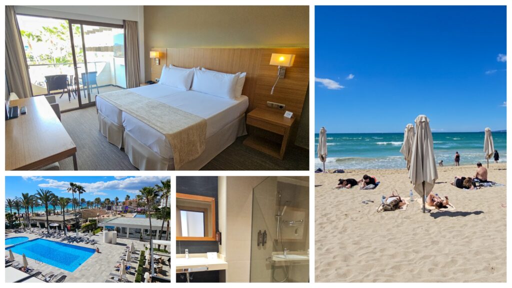Lors de nos précédents séjours à Majorque, nous étions passés de nombreuses fois devant l’hôtel Universal Marqués, en nous disant à chaque fois que l’emplacement était incroyable. Cette fois, lors de notre voyage en avril dernier, nous avons décidé de sauter le pas et d’y séjourner quelques jours. Et nous n’avons pas été déçus ! L’hôtel bénéficie d’une situation exceptionnelle, directement en bord de mer, avec une vue à couper le souffle sur les eaux turquoise et les plages alentour. Les chambres sont petites, certes, mais la vue depuis le balcon compense largement : difficile de rêver mieux pour un réveil face à la Méditerranée. Nous avions opté pour la demi-pension, et la cuisine s’est révélée correcte, avec un bon choix de plats et des repas variés. Rien de gastronomique, mais tout à fait satisfaisant pour un séjour balnéaire. Il n’y a pas de parking privé à l’hôtel, mais cela ne nous a posé aucun problème pour nous garer fin avril, la période étant encore calme.
