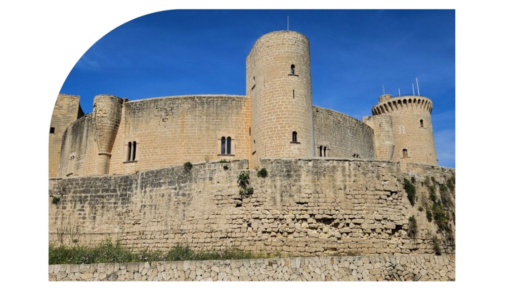 Pour accéder au château, il est possible de monter à pied, en gravissant de nombreux escaliers — un effort largement faisable — ou en voiture grâce à un parking gratuit au sommet. En avril, nous n’avons eu aucun problème pour nous garer, mais il est probable qu’en plein été, les places se remplissent vite. Une fois arrivé, la terrasse offre un panorama exceptionnel sur la baie de Palma, la vieille ville et la cathédrale qui se détache sur l’horizon. Nous avons adoré cette visite, autant pour son histoire que pour les points de vue incroyables qu’elle offre, parfaits pour la photo ou simplement pour admirer la ville depuis les hauteurs.