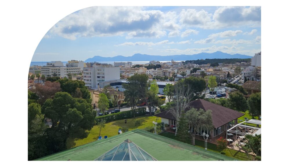Aujourd’hui, nous quittons notre hôtel du sud de l’île pour partir à la découverte du nord de Majorque. Sur la route, nous faisons une halte à Petra, un petit village typiquement majorquin que nous avons trouvé plein de charme, avec ses ruelles tranquilles et ses maisons de pierre dorée. Nous poursuivons ensuite jusqu’à Can Picafort, où nous nous installons à l’hôtel Grupotel Gran Vista & Spa, un établissement confortable entouré de jardins et idéalement situé pour explorer la région. Après avoir pris nos marques, cap sur une après-midi détente entre Cala Agulla (12) et Cala Mesquida (9), deux plages superbes bordées de dunes et d’eaux turquoise parfaites pour la baignade. En fin de journée, nous partons vers le Cap de Formentor💙(5), l’un des lieux les plus spectaculaires de l’île. Nous découvrons successivement sa plage paisible, son phare et ses points de vue vertigineux sur les falaises, où nous assistons à un magnifique coucher de soleil. Pour conclure cette journée bien remplie, nous dînons au Bar Europa à Can Picafort, dans une ambiance conviviale et locale, avant de regagner l’hôtel pour la nuit.