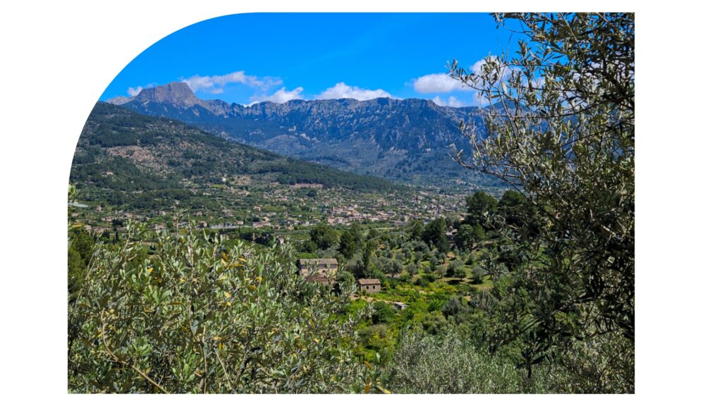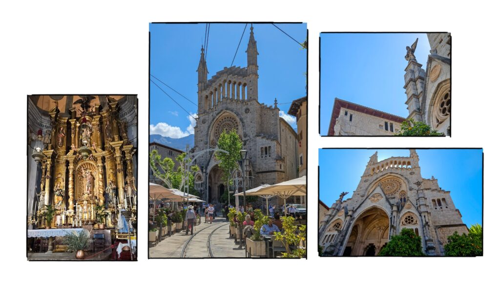 ⛪ Nous avons toujours aimé nous arrêter à Sóller, la plus grande ville de la région, située au cœur d’un large bassin entouré de cultures maraîchères, d’orangers et d’oliviers. Ce paysage typique de Majorque nous séduit à chaque visite, et on comprend vite pourquoi de nombreux habitants, ayant fait fortune à l’étranger dans le commerce des primeurs, sont revenus goûter une paisible retraite ici.