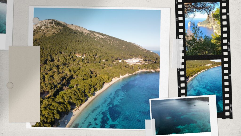Nous avons fait une halte sur la plage de Formentor, une anse ourlée de pins et de sable blond. Elle nous a semblé un peu plus petite que dans nos souvenirs – sans doute l’érosion, ou alors c’est juste que le temps passe et que les souvenirs grandissent. À deux pas se trouve l’hôtel Formentor, un lieu mythique inauguré en 1929. Il a accueilli tout un cortège de célébrités : Charlie Chaplin, Grace Kelly, Winston Churchill, Audrey Hepburn… rien que ça !