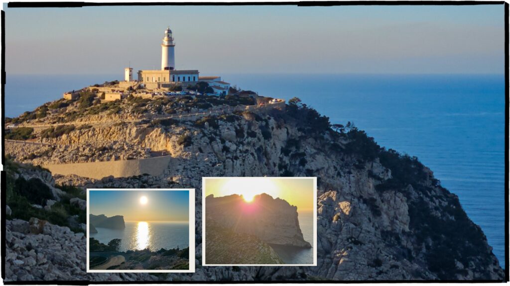 Sur la route depuis Pollença, les 20 kilomètres qui mènent au cap serpentent entre montagnes et panoramas à couper le souffle. La route, construite dans les années 1930 par l’ingénieur italien Antonio Parietti, est une prouesse à elle seule : virages serrés, points de vue suspendus, falaises abruptes… un vrai terrain de jeu pour les photographes et les amateurs de sensations fortes !