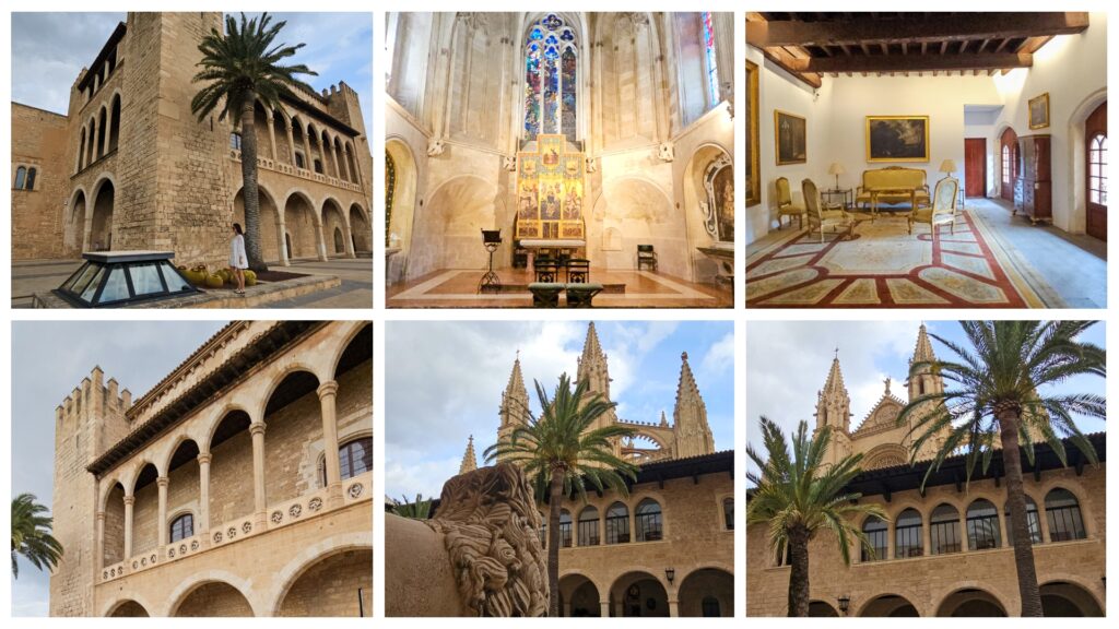 Lors de notre dernier séjour à Palma, en avril dernier, nous avons enfin pris le temps de visiter le Palais Royal de l’Almudaina, situé juste à côté de la cathédrale. Nous étions déjà passés devant à plusieurs reprises sans jamais y entrer, et cette fois, nous avons eu envie de découvrir ce lieu emblématique de l’histoire majorquine. L’Almudaina était à l’origine une forteresse musulmane du Xe siècle, avant d’être transformée au XIVᵉ et XVᵉ siècle par les rois de Majorque en un véritable palais royal. À l’intérieur, nous avons aimé parcourir les différentes salles restaurées et richement décorées, où se mêlent tapisseries, mobilier d’époque et ambiance solennelle. Certaines pièces sont encore utilisées aujourd’hui pour les réceptions officielles du roi d’Espagne, ce qui rend la visite d’autant plus fascinante.